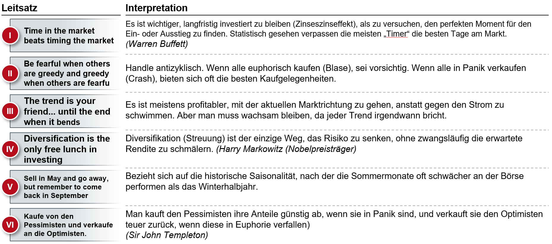 Man muss das Rad nicht neu erfinden, um an der Börse erfolgreich zu sein. Oft reicht es, sich an die bewährten Prinzipien der Profis zu halten. Im Folgenden findest du die wichtigsten Börsenweisheiten und ihre Bedeutung kompakt zusammengefasst – vom Zinseszins-Effekt bis hin zur richtigen Strategie für turbulente Marktphasen: